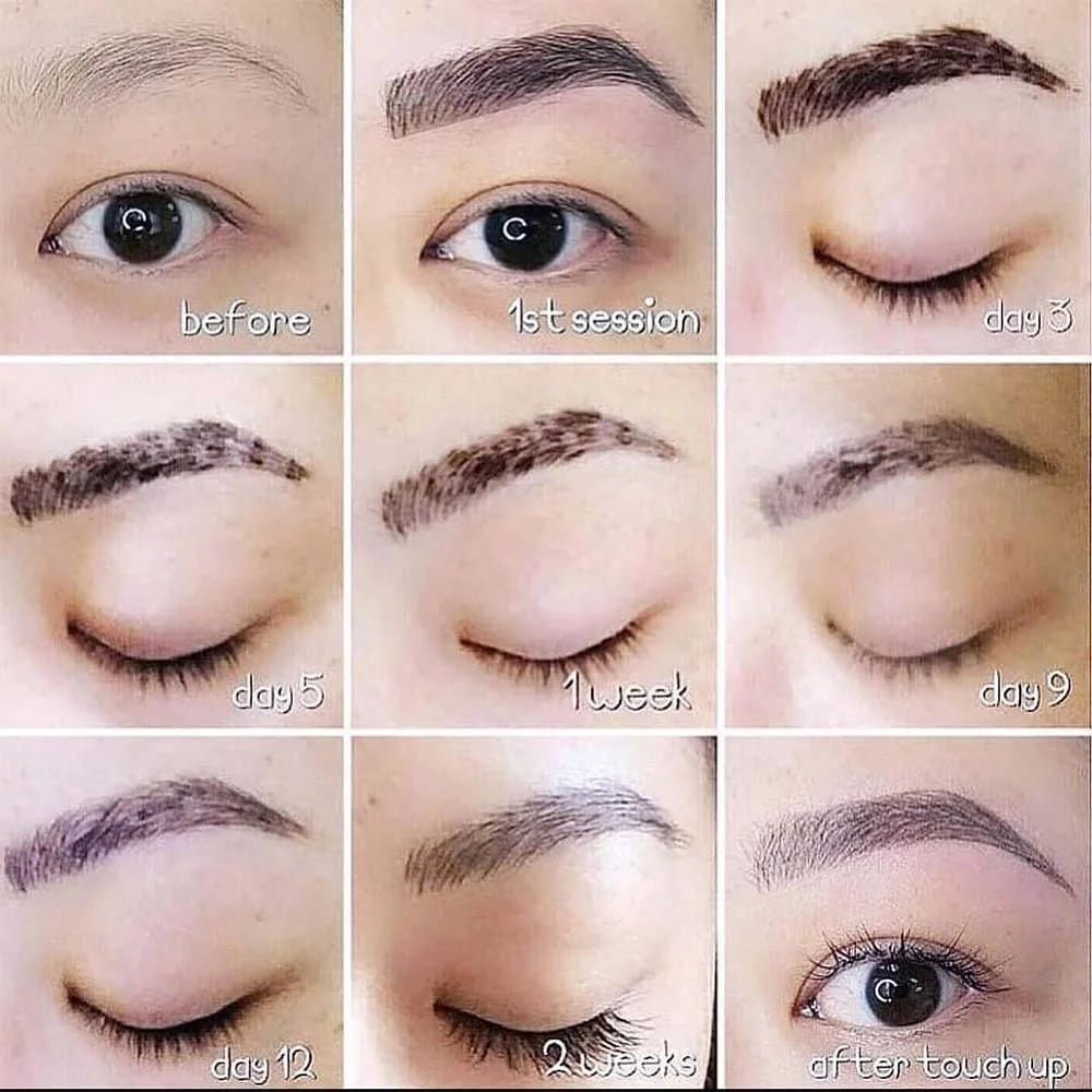 There is a month-long healing process with microblading. Witness initial swelling, the scabbing stage, lightening, and potential patchiness. Plan for the mandatory touch-up after 4-6 weeks to refine and perfect your brows.