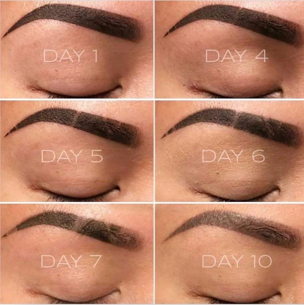 By weeks 6-8, the brows should be mostly healed, with the final result becoming apparent, and any initial darkness significantly reduced.
